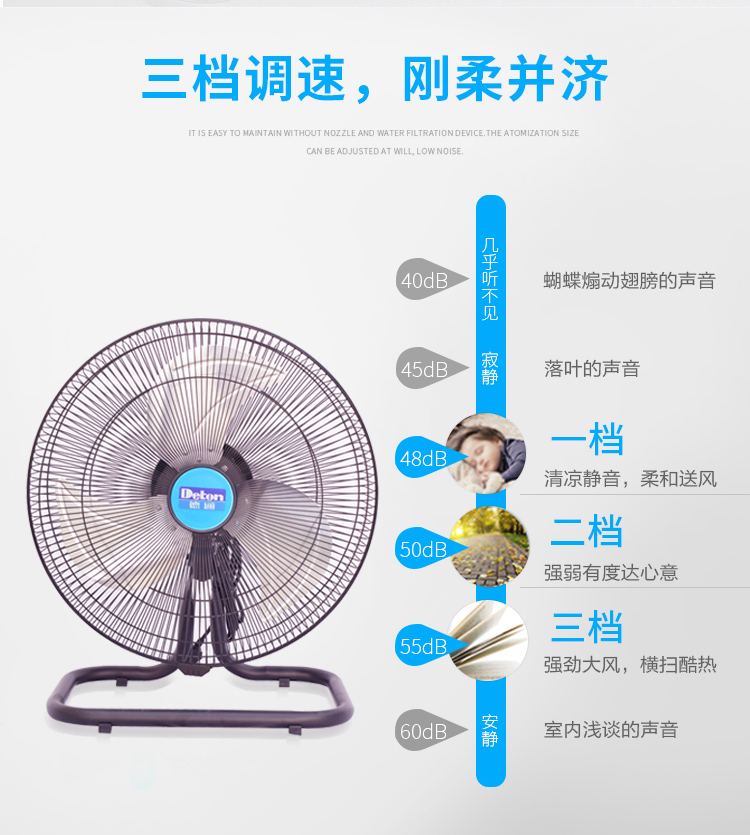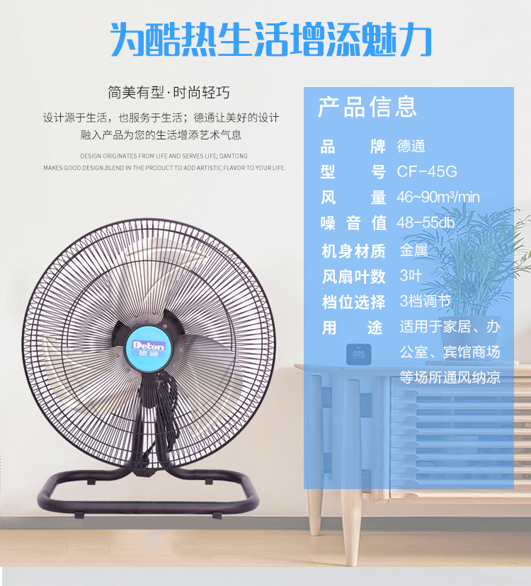 您预订的是:CF-45G 德通(Deton)台地式电风扇 大功率风扇 摇头式 趴地扇 家用风扇(18寸)