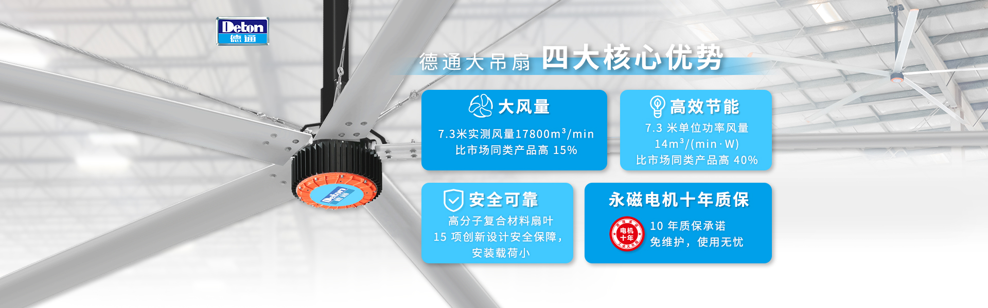 德通工业大吊扇在菜鸟中转仓同场竞技,赞!